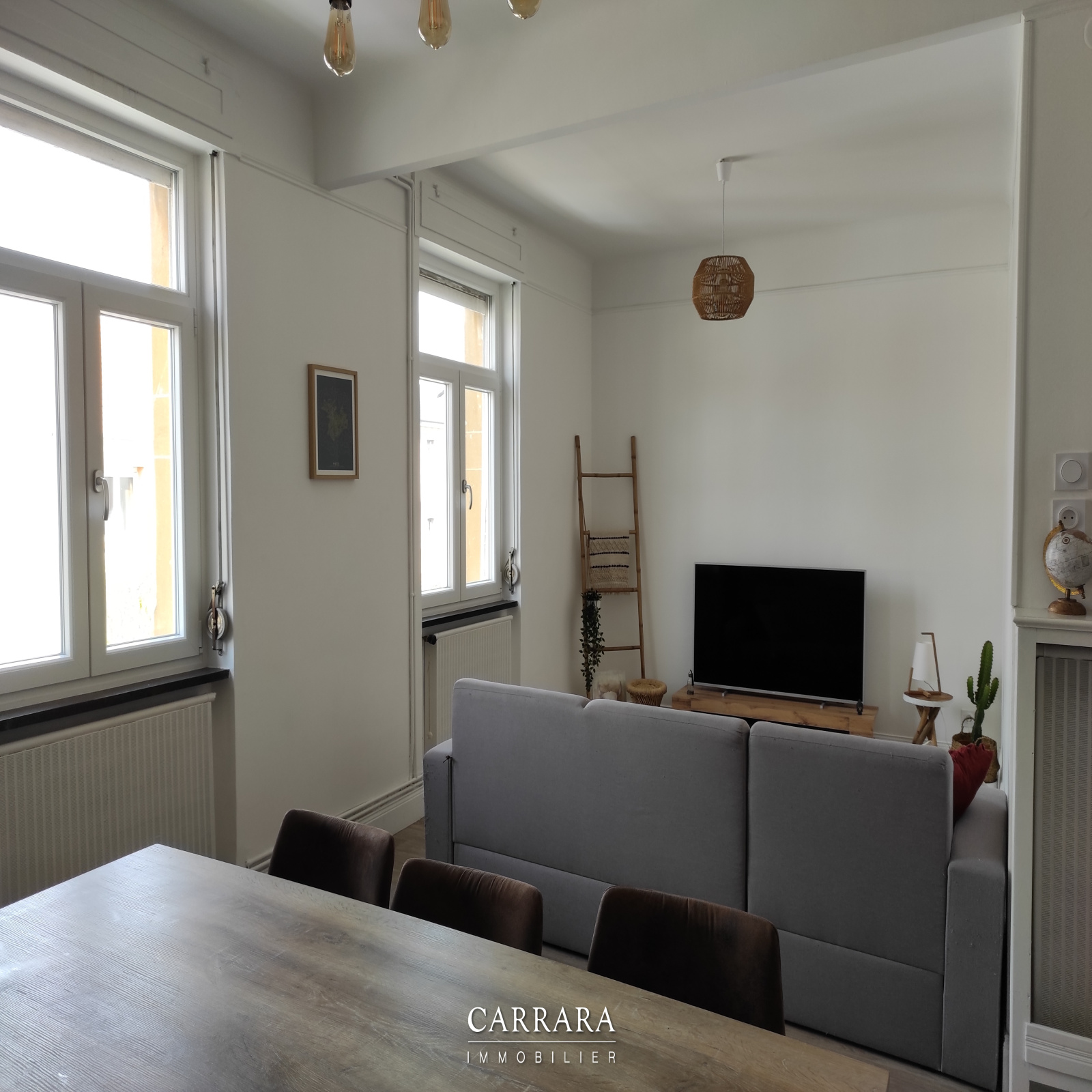 MONTIGNY-LES-METZ, 42 rue de Frescaty Au 1er étage / 2 d'un petit immeuble bien tenu, venez découvrir ce bel appartement de 86 m², refait à neuf, comprenant : entrée sur couloir, grande pièce principale, cuisine équipée ouverte sur coin repas, 2 chambres, salle d'eau avec douche à l'italienne et WC séparé. Viennent compléter ce bien : 2 balcons, cave, garage et jardin commun.